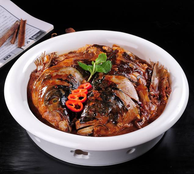 鱼头红焖,鱼身清炖,只放葱姜